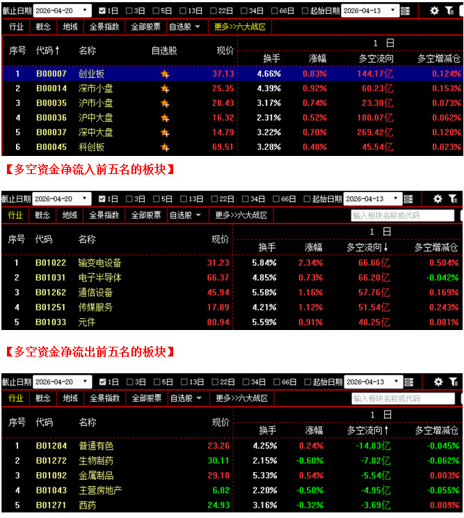 (4月20日晚评,北京指南针科技发展股份有限公司提供)