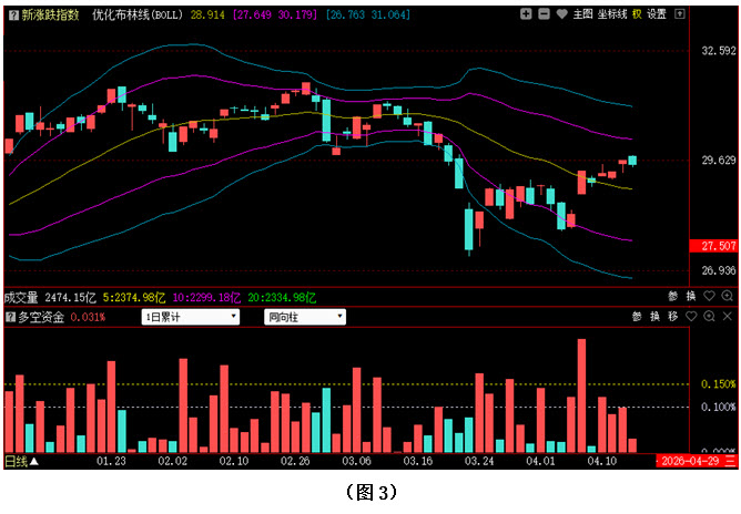 从昨日多空资金流向来看,70个板块中34个板块资金净流入,36个板块资金净流出,整体板块主力资金进场积极性有所下降。其中输变电设备、西药、银行、生物制药、汽车零部件、医疗器械与服务、中药、家用电器等板块资金净流入居前;贵重金属、电气电源设备、光学光电子、计算机应用、普通有色、传媒服务、化学制品、化肥农药等板块资金净流出居前。资金净流出居前的板块主要集中在近期活跃的部分新能源方向、金融科技、算力硬件,以及油价下跌影响的部分化工等板块上;资金净流入居前的板块主要集中在前期调整相对充分、行业景气度较高的电力设备板块和有消息驱动的医药板块,以及防御性的高股息和消费板块。可以看出近期超跌反弹修复较强的部分个股出现短线筹码的松动,资金转向前期调整充分或滞涨的板块,资金高低切换动作较为明显。在年报、一季报业绩公布密集阶段,会加大部分个股的分化。市场焦点从题材炒作转向业绩验证,建议围绕一季报业绩高增长或超预期的方向布局。相反,需防范业绩不及预期、亏损个股的风险再度释放。选股上,一方面低位或调整充分,有业绩支撑和政策催化的方向有一定的轮动机会。行情关键位置的震荡阶段,低估值、高股息、业绩稳定的方向资金配置意愿有所增加,重点关注现金流稳定、盈利稳定、股息率超3%的优质标的。科技制造板块连续活跃之后,会有分化,但中期机会较为确定,继续优先选择研发投入高、订单确定性强的龙头企业,尤其是年报、一季报数据公布之后,牛机构、牛私募增仓、尚未脱离成本的个股重点挖掘和配置。短线大盘进入震荡整固阶段,对于主力资金逆势增仓力度明显的个股可适当关注。如图1: