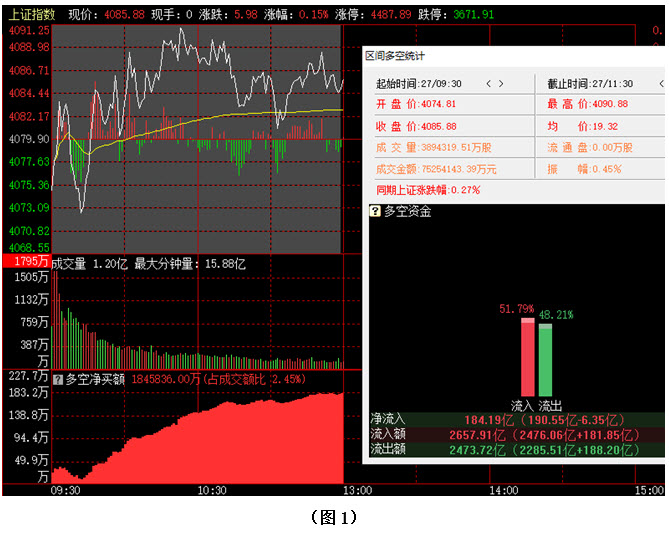 从图2中可以看到,从本周一到周三,大盘都延续着上周的强势,继续向上缓步攀升,虽然市场上涨的速度并不是很快,但运行十分稳健,到周三收盘时,指数已经站到了4100点整数关口的上方。周四与周五,多方有所休整,大盘出现连续回探,好在回探的幅度很小,指数依然完全运行在5日成本均线上方,市场短期强势格局并没有改变。从下方的多空资金运行情况来看,本周一到周三,资金均为流入状态,而周四与周五,资金则均为流出,由于周一的资金流入量明显大于周五的资金流出量,周三的资金流入量也大于周四的资金流出量,所以就全周来说,本周多方力量依然占据着优势。在这种情况下,只要下周空方无法连续施压,多方及时发力反击,行情就有望再次冲上4100点整数关口,并继续向上拉升。