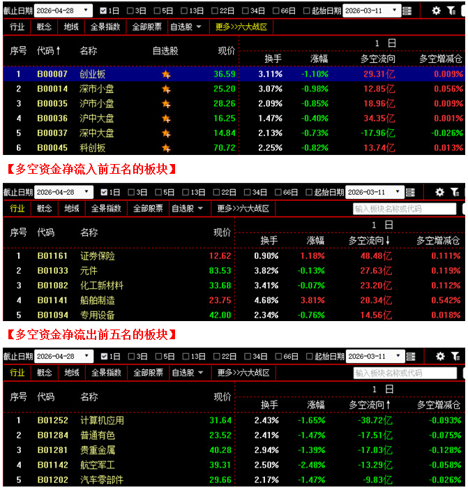 (4月28日午评,北京指南针科技发展股份有限公司提供)