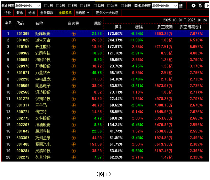 【10月20日至10月24日多空资金增仓前300名中涨幅最小的20只个股】