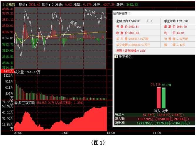 今日早间大盘反复震荡,尽管震荡的低点位置在逐步抬高,但在3830点上方,市场却频频遇阻,始终无法更进一步,至中午收盘时,指数位于3831点。从日K线图上看,今天上午大盘虽有反弹,但力度很弱,指数依然完全运行在5日成本均线下方,市场短期弱势格局丝毫没有改变,故此一旦11月24日的低点失守,行情很可能会继续向下寻求支撑。从下方的多空资金来看,早间开盘后,多方就占据优势,随后资金逐步流入。截止到中午收盘时,沪市当中多方力量高于空方超过两个百分点,资金流入50多亿。从六大战区的情况分别来看,截止到今日中午收盘时,六个战区均为资金流入状态,且创业板战区与深中大盘战区资金流入双双超过55亿。可见今日上午多方全面发力,试图进行反击,但与昨日各战区的资金流出数额相比,目前多方的反击力度明显偏弱。在这种情况下,行情自然难以出现快速拉升,市场或仍有震荡下行的可能。建议大家控制好仓位,不要急于重仓抄底。