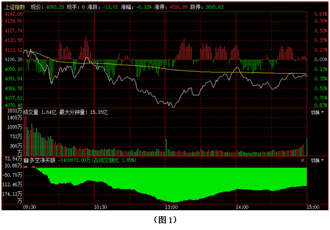 如图1所示,今日早间开盘后不久,大盘就回探至4100点整数关口下方,随后虽有反弹,但力度较弱,10点半左右指数再次跌破4100点,并不断下探,直到4070点附近市场才获得支撑,午后大盘有所回升,但指数未能重新站上4100点整数关口,最终以4093点收盘。从下方的多空资金来看,早间开盘后,多方率先占据优势,可惜资金进场力度明显不足,于是随着大盘下探,资金很快由红翻绿,并持续流出,午后市场有所反弹,资金也逐步回流,但直到收盘时,空方依然占据着优势。可见在4100点附近,多空分歧再度显现,导致行情出现反复,而这一点在昨日晚评中我们已经提前指出。所以今日的回探本就是意料之中,大家不必过于恐慌,反而可利用市场震荡机会,关注近期有资金连续加仓的板块,并在其中优选个股,逢低吸纳。
