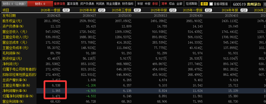 第二类,业绩虽然增长,但增幅不及预期的股票。例如贵州茅台,上周末4月25日刚刚披露一季报业绩,虽然净利润增速由负转正实现增长,但增速只有一个多点,远低市场预期,当天股价下跌3.79%。