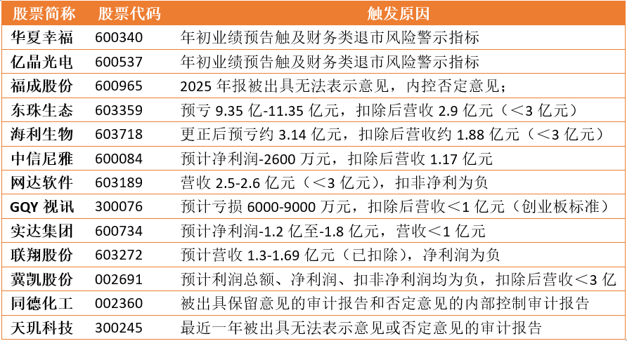 为便于投资者识别和防范风险,我们整理了部分财务指标触线可能存在被ST戴帽风险的股票(截止4月28日尚未被ST),详见下图:
