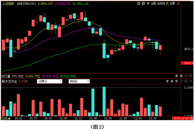 从上证指数走势来看:昨日股指一度明显下探跌破5日、34日成本均线,最终在前一日早评提醒的11月24日和12月4日低点连线的波段上升趋势线位置止跌回升,多空资金净流入66.79亿元,关键位置资金有一定的逢低进场动作。市场的震荡主要是来自前期活跃的科技成长板块品种的下跌,不过盘中消费类和地产产业链板块轮动走强,对冲科技成长板块的负面影响,午后科技成长板块也企稳回升,对市场资金做多积极性的提升和科技制造主线机会的延续有正面的提振作用。消息面,CPI数据同比上涨0.7%,环比小幅回落0.1%,PPI数据环比上涨0.1%,同比下降2.2%,总体看通缩局面和市场需求改善不明显,叠加四季度经济增速延续三季度低于5%的态势,短期资金整体做多积极性不高。后续行情能否进一步企稳回升向上拓展空间,还需政策的进一步发力。行业消息上,全国零售业创新发展大会在北京召开,激发资金对消费板块的操作积极性。同时,地产行业有房贷贴息利好传闻,加上万科债券展期债权人大会,市场对万科纾困有一定积极预期,盘面上消费和地产板块个股走势相对较强。这一点我们在之前早评提醒过,地产和消费政策的释放尤为关键,一方面相关板块是目前经济增长重要的短板,另一方面相关板块中期整体涨幅相对科技成长和周期类板块要小,有一定的弹性空间。不过,地产和消费板块能否有超预期的利好政策落地还需观察和确认。对于消费板块和地产板块的走强,目前还只能认为是资金阶段的高低切换,不排除短线补涨和投机性炒作为主。由于消费类、地产产业链板块中一线或二线蓝筹居多,在市场成交量总体萎缩,政策消息尚不明朗下,接下来会迎来分化。在中央政治局会议定调2026年经济政策,以及美联储如期降息背景下,内外部环境相对友好,市场整体以平稳走势为主,可能会继续围绕3900点整数关口震荡,短线机会仍以科技成长和部分政策消息驱动的题材股为主。技术上11月24日和12月4日低点连线的波段趋势线,仍是短线的重要支撑位置,注意该位置的得失做好浮动仓位的调整。从0Z指数走势来看:股指探底回升小幅上涨,全市场下跌个股家数稍多于上涨个股家数,成交量总体萎缩,多空资金净流入252.98亿元,震荡中主力资金有一定的低吸动作。对比上海市场的资金流向来看,主力资金主要对中小市值品种操作相对积极。目前股指回补了12月8日的跳空缺口,再度站上中短期成本均线,短线趋势相对稳定。由于成交量总体萎缩,同时股指处于筹码密集峰和前期高点位置,短期仍有前期解套盘和近期反弹以来的短线获利盘的抛压,尤其是昨日活跃的消费、地产板块的持续性有待观察,市场可能还是以横向震荡、个股分化为主。从波段结构牛指标组来看:马股比例维持在5%左右,处于高位横盘略有抬升的状态;牛股比例18%左右微幅下降;熊股比例20%左右小幅下降。市场牛股数量没有明显抬升,整体赚钱效应主要集中在低位个股的补涨上,应注意补涨品种反弹至重要压力区再度震荡的可能,同时关注横盘马股在资金和政策消息驱动下向牛股转化的机会。当前操作上应继续采取稳健的策略应对,总仓位控制在5成左右,底仓持股为主,短线超跌反弹品种应根据个股关键资金流向和决策信号做好仓位的动态调整,浮动资金应根据资金流向在震荡中做好低吸操作。