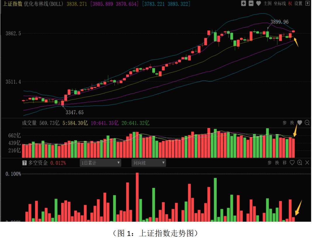 从上证指数走势来看:节前股指呈现探底回升小幅上涨的走势,成交量总体萎缩,资金进场积极性总体不高。目前股指运行在中、短期成本均线之上,距离3900点高点仅一步之遥,技术走势属于强势。10月份影响市场走势的事件和因素较多,比如10月份会公布5000多家上市公司三季报业绩;10月20日前后开始陆续公布9月份CPI、PPI、工业增加值、消费品零售总额、固定资产投资总额以及三季度GDP增速等数据,相关数据是判断经济通缩是否改善,以及经济增长的重要指标。中期看,稳经济政策总体会保持稳定和延续,对全年完成5%的既定目标有一定的保障,但三季度经济增速相比上半年经济增速会有所下滑。在重要经济数据公布之前,资金整体观望情绪可能会延续,对地产产业链、消费、部分周期性行业走势会形成承压,从而制约整体行情的上涨空间和力度,资金可能仍活跃在部分科技制造等成长方向。同时,行情经过三季度政策叠加流动性推升之后,部分板块和品种连续上涨面临三季报业绩的考验,个股震荡幅度会加大。在经济数据公布之后,10月中下旬“四中全会”召开,届时“十五五”规划纲要会落地,会提振短期做多情绪。对于“十五五”规划的具体量化指标需要等到明年上半年会明朗。相关规划的影响主要体现在经济和资本市场的中长期影响上。市场中短期的关注焦点,一方面是经济数据公布情况,另一方面会关注四季度经济增量政策的定调。目前优化布林线指标处于极度缩口状态,意味着在没有新的政策消息催化下,股指短期震荡幅度会趋窄,等待经济数据和增量政策明朗后会进一步选择方向。短期3900点一带有一定的技术和心理压力,下方3800点有一定的技术支撑,近期股指围绕3900点一带争夺的可能性较大。从0Z指数走势来看:该指数围绕中、短期成本均线缩量震荡,近期连续调整至无穷成本均线位置反弹,无穷成本均线是中短期波段趋势重要分水岭,应密切关注该位置的得失。由于市场整体成交量萎缩,短期资金进场力度不足,技术上前期高点和筹码密集峰位置压力较大,叠加三季报业绩和三季度经济数据的公布阶段,股指维持横向震荡的可能性较大。从短期结构牛(大盘)指标来看,马股比例维持在61%左右,有小幅抬升的趋向;牛股比例18%左右总体呈下降态势;熊股比例20%左右,连续上升之后小幅下降。总体看,牛股数量没有提升,主要原因一方面部分强势股仍处于风险释放走势中,另一方面部分强势的科技成长品种继续呈现“强者恒强”的走势。市场机会在部分超跌或者调整较为充分的个股上。进入三季报业绩公布期和政策观察期,仍需警惕高估值题材股的补跌风险。当前应继续采取稳健的操作策略,总仓位控制在6-7成,底仓持股为主,警惕强势股补跌风险,短线或波段浮动仓位应紧盯资金流向和决策信号做好止盈操作,短线能力较强的投资者可小仓位参与低位个股和题材股的交易性机会。