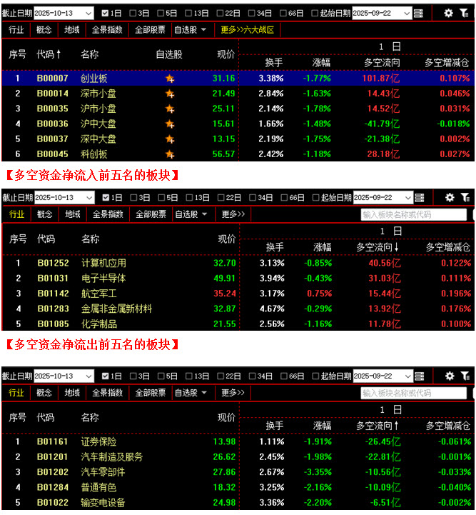 (10月13日午评,北京指南针科技发展股份有限公司提供)