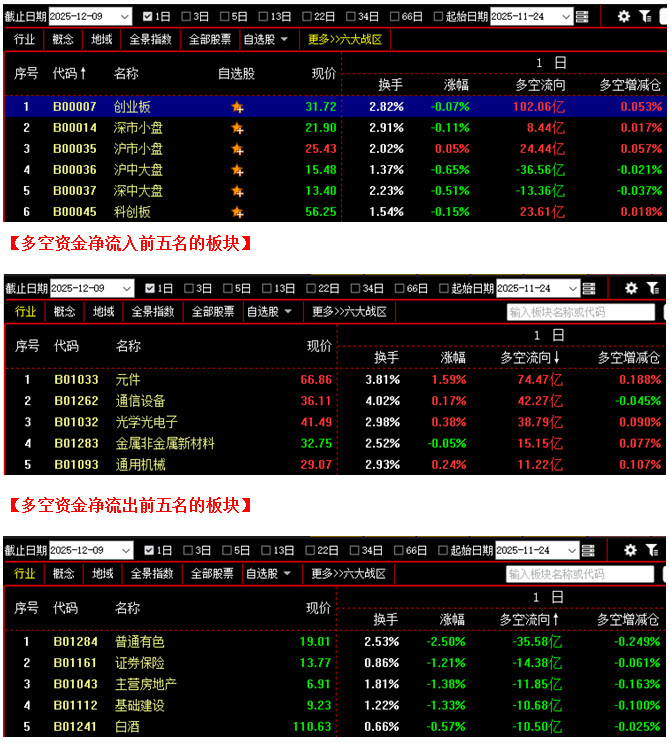(12月9日午评,北京指南针科技发展股份有限公司提供)