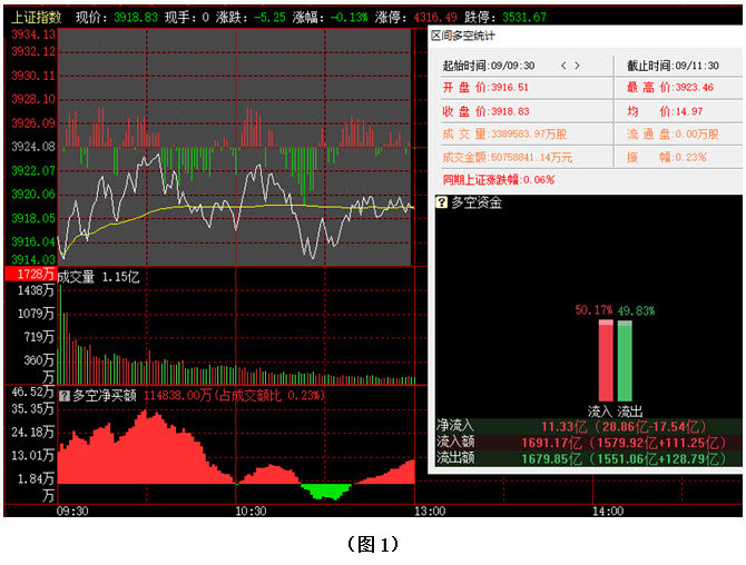 从板块资金动向数据来看,截止到今日午间收盘时,在资金流入榜上,元件板块以74.47亿的资金流入额位居榜首;其次是通信设备板块,资金流入42.27亿;此外,光学光电子板块、金属非金属新材料板块、通用机械板块也都相继上榜,三个板块的资金流入额分别为38.79亿、15.15亿、11.22亿;再看资金流出榜,普通有色板块引领做空,资金流出35.58亿;其次是证券保险板块,资金流出14.38亿;此外,主营房地产板块、基础建设板块、白酒板块的资金流出额也都相对较多,分列资金流出榜第三到第五名位置。综合比较后可知,今日上午不仅元件板块资金流入高达74亿,通信设备、光学光电子等板块的资金流入额也都在35亿之上,这些板块的持续做多对维持场内多方人气起到积极作用,但同时我们也注意到,其它板块的跟进力度开始有所减弱,这就给空方带来了再次施压的机会;只见空方阵营中,除普通有色板块资金流出超过35亿之外,证券保险、主营房地产、基础建设、白酒等权重板块的资金流出额也都在10亿之上,对大盘造成压制。可见今日上午虽然多方力量仍强于空方,但空方力量较前两日明显增强,说明在当前位置,多空双方仍有较大分歧,行情在短期内很可能还会有所反复。在这种情况下,建议大家切不可盲目追涨杀跌,而是应在控制好仓位的同时,关注近期有资金连续流入且短期趋势保持向上的个股,逢低逐步吸纳。